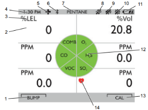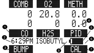 | 2 | Current Time | 6 | Successful Bump Test/ Calibration Indicator |