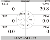 If battery alarm displays, stop using the device as it no longer has enough power to indicate potential hazards, and persons relying on this product for their safety could sustain serious personal injury or death.
