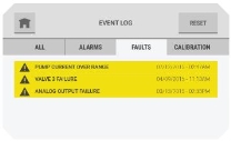 Faults can be acknowledged and reset through the pop-up if it is a channel related fault. If the fault is system related, it is acknowledged and reset through the fault tab in the event log. Once the reset is initiated on the system related faults, it will reset all of the faults concurrently. For faults related to the display, the system will notify the user upon reset. |