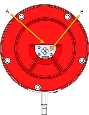 Figure 20 Optical Parts to Clean (A) - COPM Reflector (Beneath Surface) (B) - Sapphire Window |