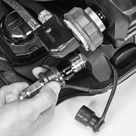 NOTE: When the female fitting of the quick-fill hose fully engages with the UAC fitting, filling starts immediately. NOTE: After approximately 60 seconds, the pressure between the secondary air supply and the SCBA cylinder will be equal. |